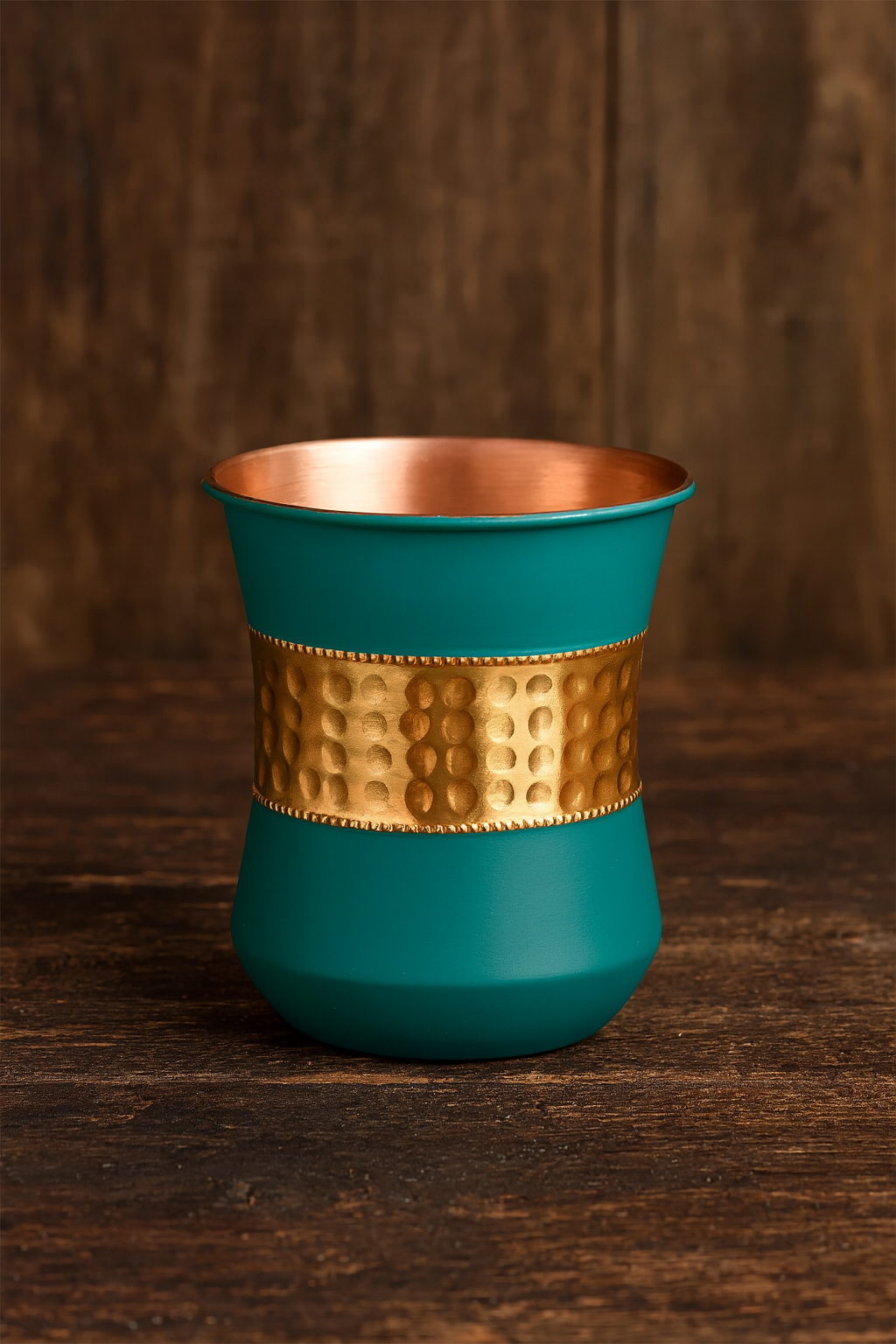 Add a touch of color and craftsmanship to your table with this 300ml pure copper hammered glass, finished in a smooth green silk coating. Handcrafted by artisans, this piece showcases a refined balance of traditional copper texture and contemporary design.
