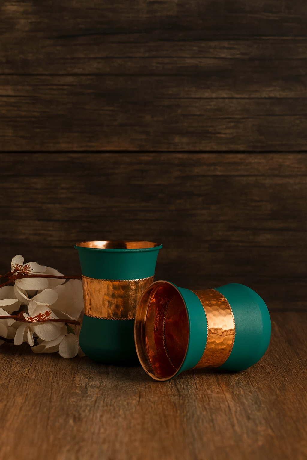Copper Hammered Glass 300ml – Green Silk Finish Handcrafted Drinkware