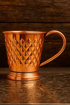 Experience timeless elegance with the Pure Copper Bucket-Shaped Moscow Mule Beer Mug. Crafted from copper, this 450ml mug is designed to keep your drinks refreshingly cold while enhancing the flavors of your favorite drink. The unique diamond hammered finish adds a sophisticated texture, making it a stunning addition to any setup or party. The comfortable copper handle provides a secure grip, perfect for enjoying your drink and especially the classic Moscow Mule.