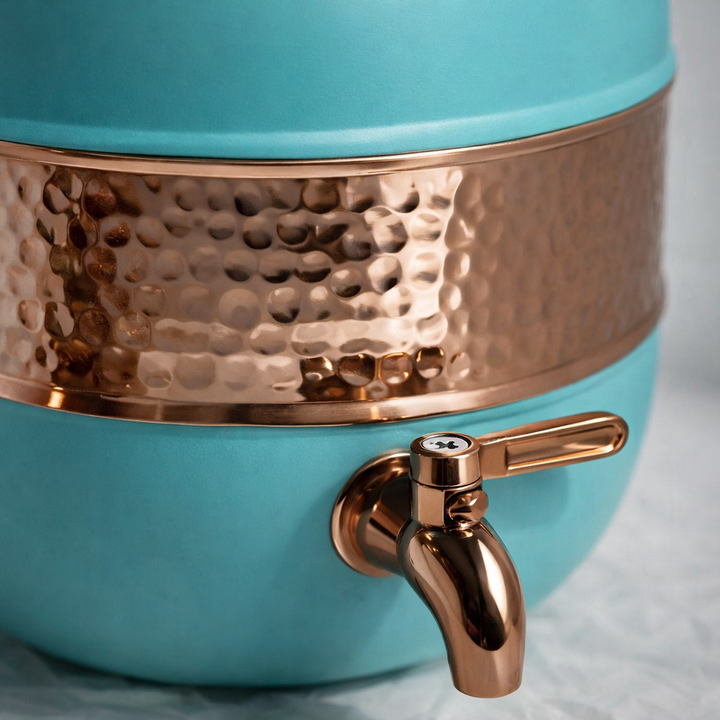 Pure Copper Water Dispenser 5L – Half Hammered Turquoise Finish with Stand