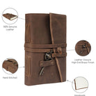 Hand Made from 100% recycled paper. Features 100% genuine cowhide leather cover for the journal.