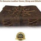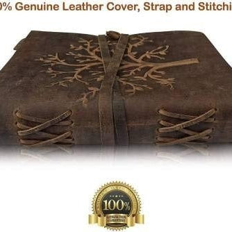 Hand Made from 100% recycled paper. Features 100% genuine cowhide leather cover for the journal.